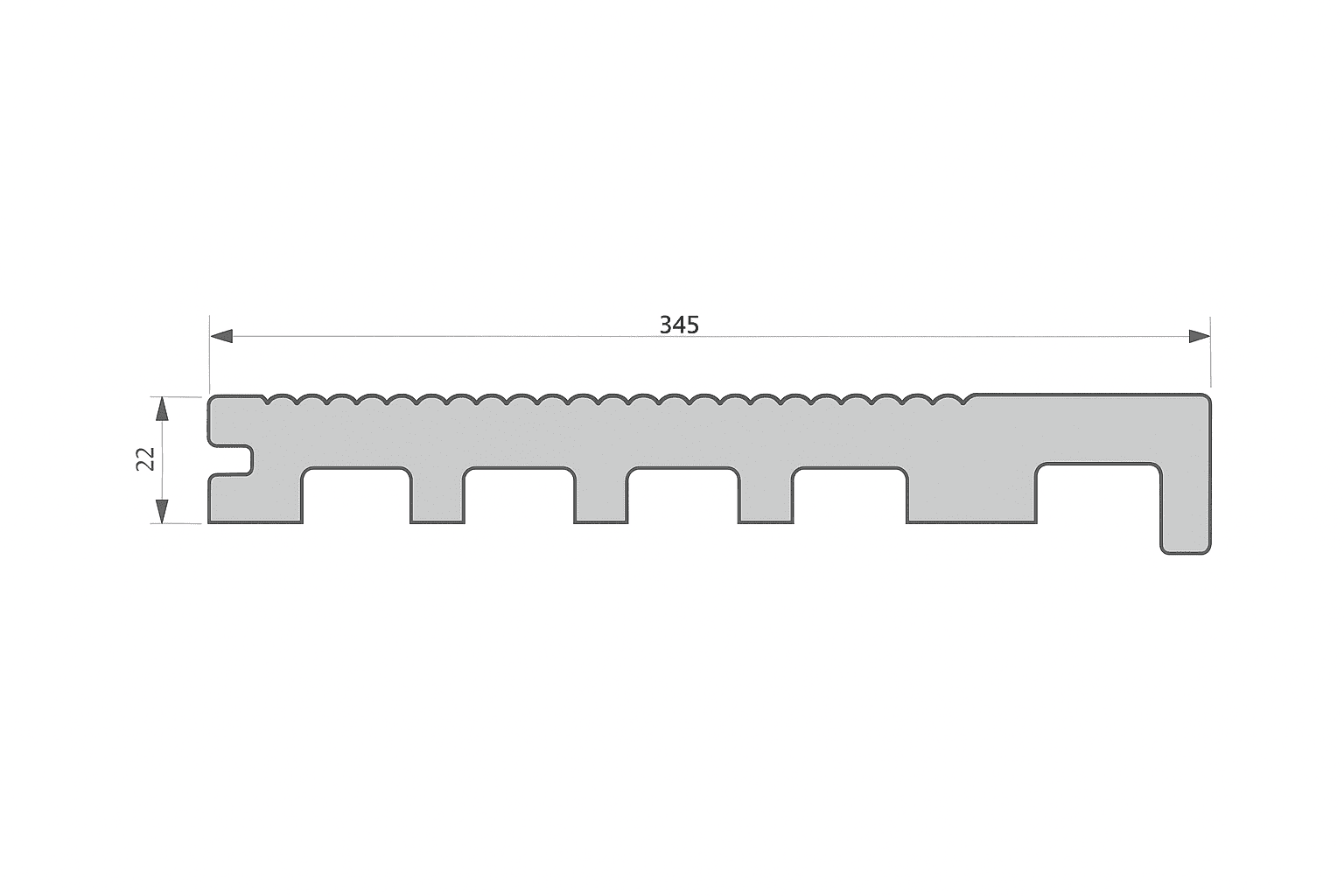 Ступень Ecodecking Техно полнотелая 345х22 это коммерческая ступень из ПНД. На основной поверхности доска имеет мелкий вельвет и брашировку. Полнотелая ступень не имеет ячеистой структуры и поэтому подходит для мест с высокой влажностью таких как бассейны, пирсы, причалы и т.д.